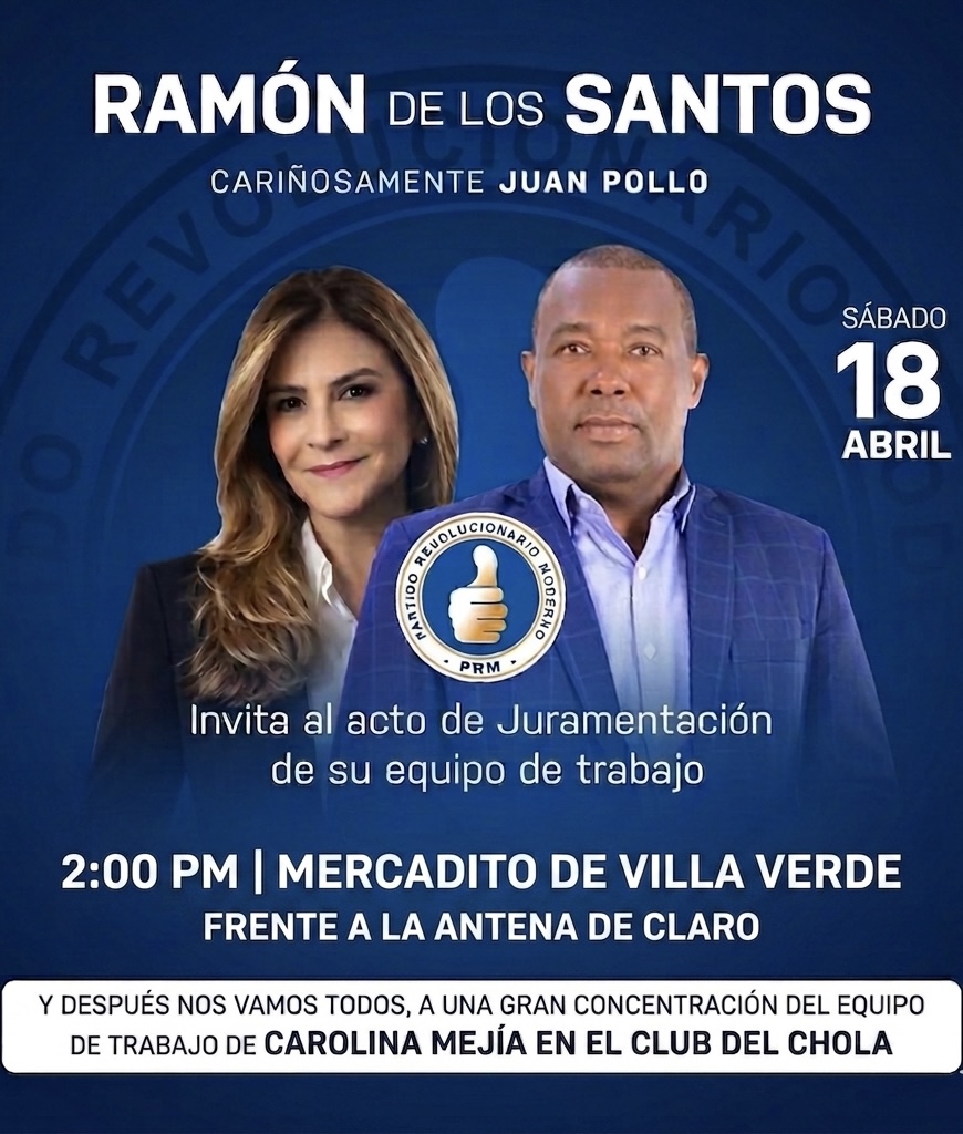 El Empresario Lic. Ramón de los Santos, conocido popularmente como "Juan Pollo", ha formalizado la convocatoria para la juramentación de su equipo de trabajo, en apoyo a Carolina Megía.